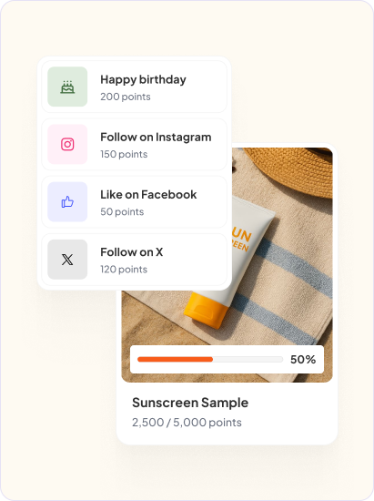 Give points for purchases and actions. Create your own rules, levels, and rewards.